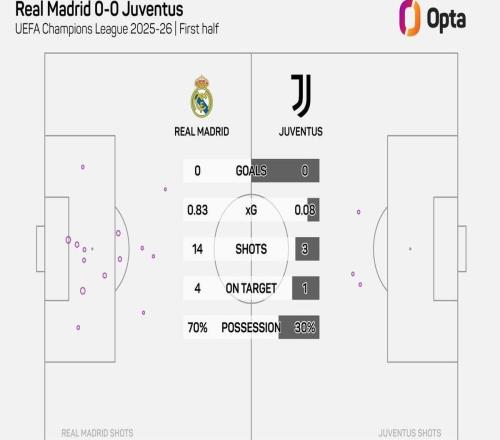 戰尤文14次射門,為皇馬本賽季沒進球上半場中射門最多的