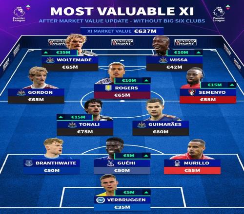 在更新了英超球員身價后,德國轉會市場網站列出了英超非BIG6最貴陣容,沃爾特馬德領銜紐卡5人入選。德轉列英超...