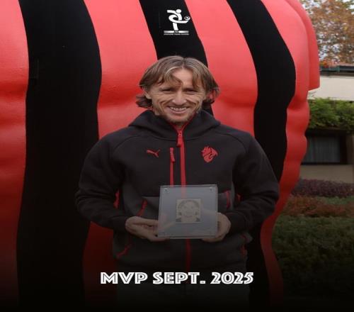官方消息,米蘭中場莫德里奇領(lǐng)取了意大利球員協(xié)會意甲9月最佳球員獎。