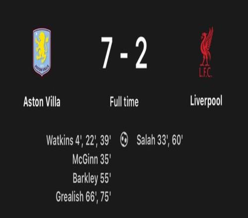 值得一提的是,利物浦上一次輸給維拉是在2020年10月4日的英超比賽中,以2-7慘敗。薩拉赫完成了球隊唯二的兩粒進球。