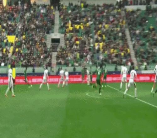 第6分鐘,張玉寧頭球擺渡,奧馬爾松解圍失誤,法比奧轉(zhuǎn)身掃射破門,但主裁判判罰越位在先進球無效。