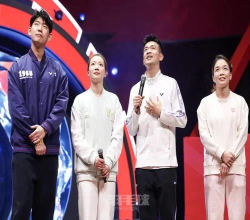 四位名將分別挑選了具有職業(yè)生涯代表意味的經(jīng)典照片,劉雨辰選擇了2023年蘇迪曼杯的神奇逆轉(zhuǎn)照,鄭思維和黃雅瓊選擇的是東京和巴黎兩屆奧運會領獎臺上的瞬間,陳清晨選擇了2025年蘇杯國羽奪冠大合照。之后,黃雅瓊的父母、鄭思維的媽媽、以及自稱“今天是清晨的‘媽媽’”的最佳搭檔賈一凡作為親友團為他們送上鮮花和祝福。